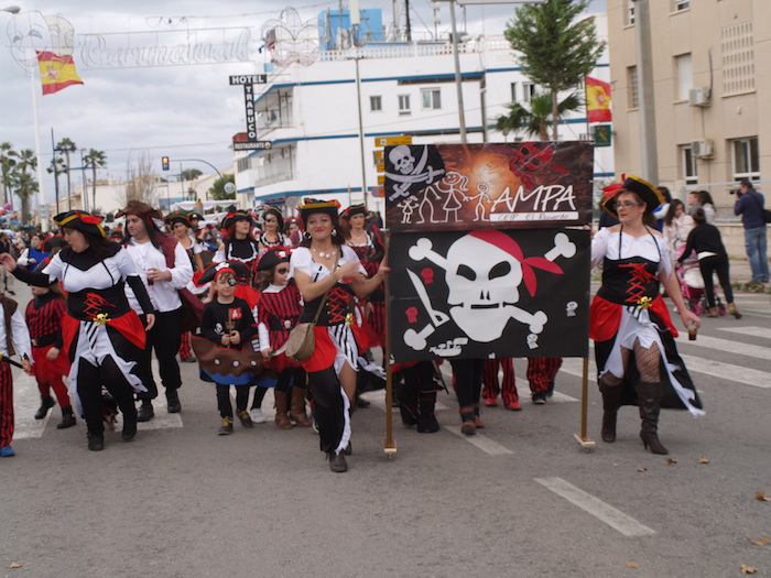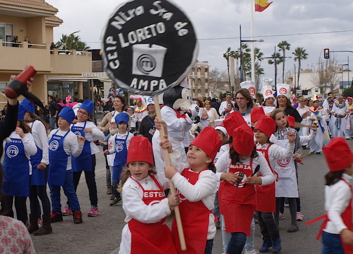 Los padres y madres del colegio El Recuerdo se enfundaron el traje de pirata para pasar una tarde divertida junto a sus hijos, a pesar del frío. Los alumnos del colegio Virgen de Loreto optaron por la cuchara, emulando a los concursantes de Master Chef Junior con una gran bandada de cocineros. Las chicas de Olé Olá se convirtieron en tribu de lujo para su musa, que mostró de nuevo sus galas étnicas.