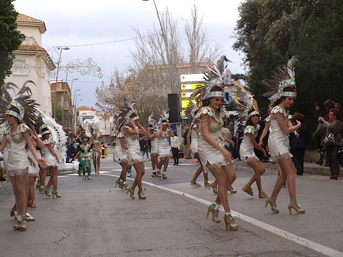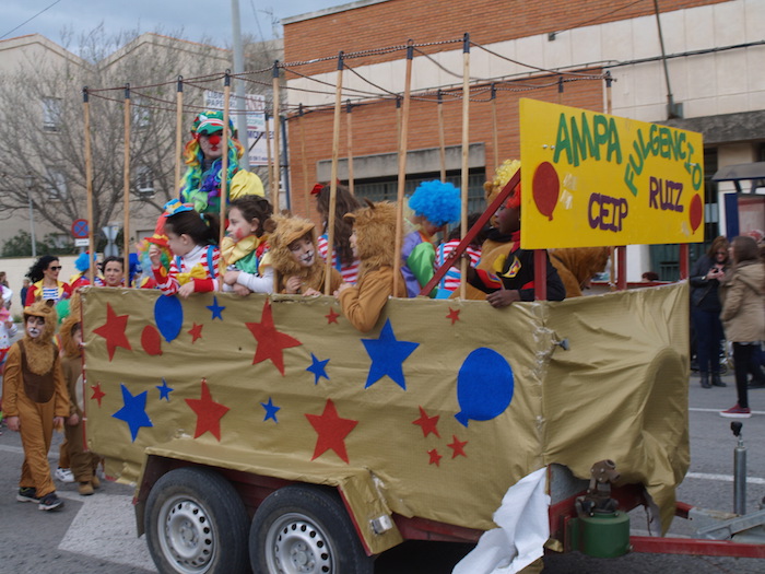 Desde los más pequeños leones y ‘clowns’ del circo del colegio Fulgencio Ruiz a las ninfas de plata y plumas naranjas de Bora Bora, todos pusieron al mal tiempo buena cara para hacer posible el desfile, aunque el recorrido se tuvo que cortar por las rachas de viento. Incluso los chicos de Aidemar se lanzaron con sus túnicas romanas a desafiar al mal tiempo. Las ninfas de Akelarre mantuvieron el tipo con sus corsés blancos con adornos morados.