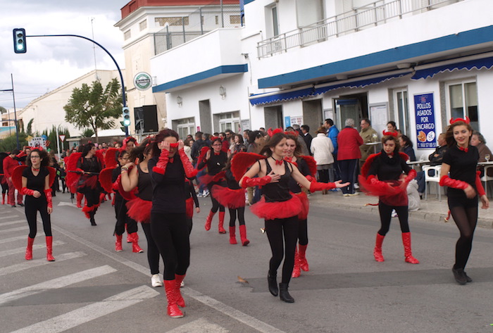 Hubo demonios, con sus cuernecillos rojos de la peña El Desayuno, en contraste con los brillos dirados de la comparsa Río, cuyas ninfas le pusieron sonrisas al viento.
