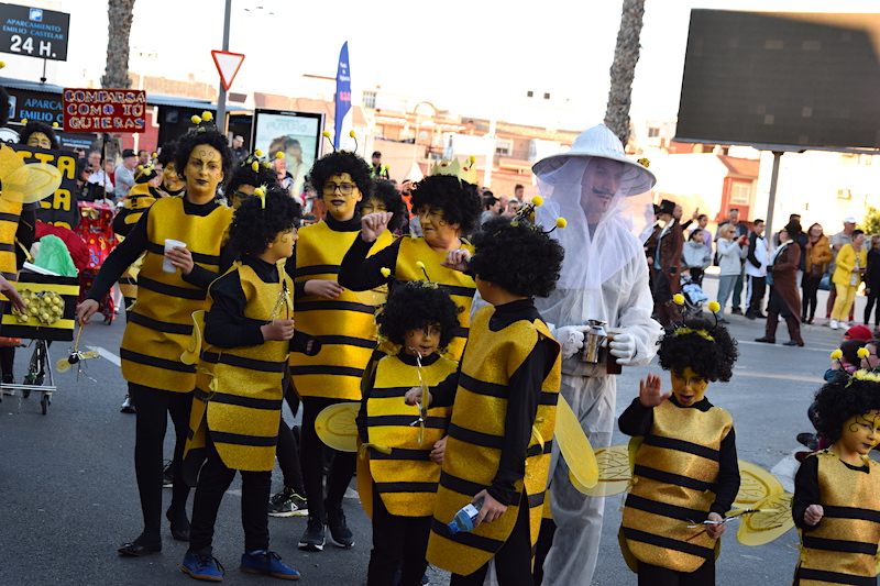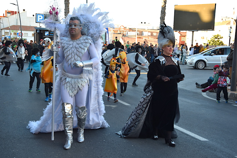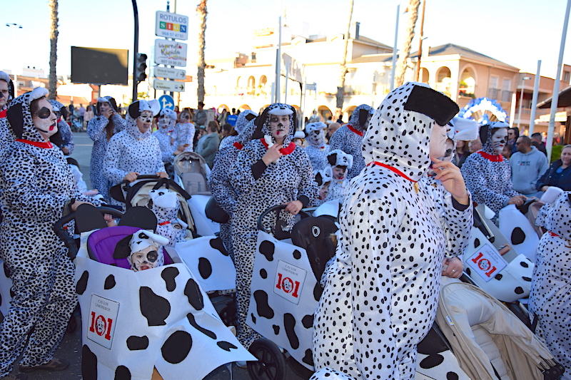 Don Carnal, Miguel Sánchez, y Doña Cuaresma, Anabella Fernández, hicieron acto de presencia. La Escuela Infantil Los Limoneros siguieron al pie de la letra el título de ‘101 dálmatas’ a juzgar por la masiva participación de pieles manchadas. Como Tú Quieras puso el toque romántico con sus aviadores de cuento ante el abundante público que salió a la avenida de Emilio Castelar para ver el espectáculo.