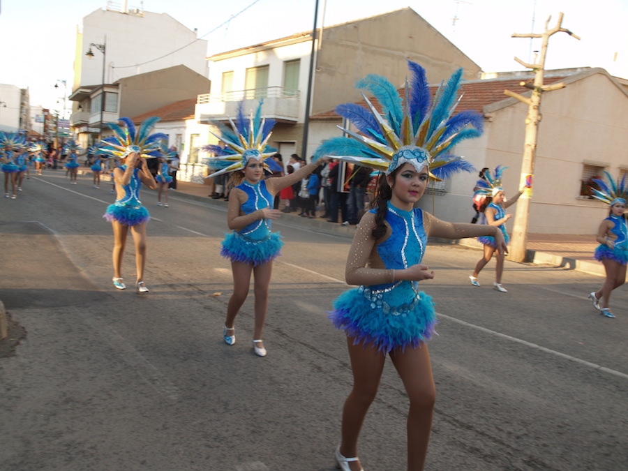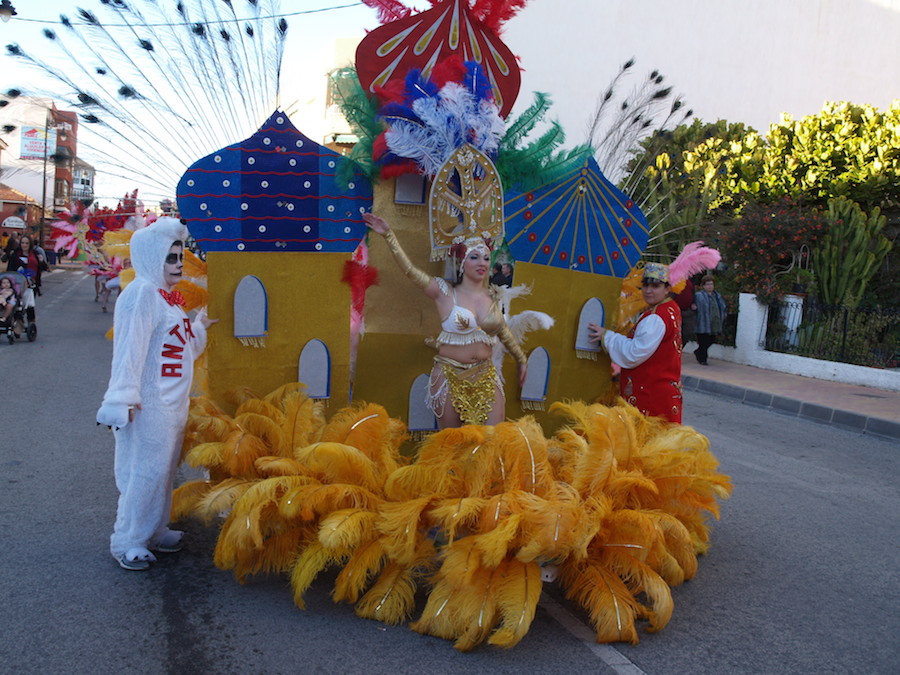 La comparsa La Amistad cubrió las calles con una nube azulada a la que dieron vida ninfas de todos los tamaños. La peña La Llana puso el tono de humor con sus vagones locos de una imaginaria montaña rusa. De mexicanos, con poncho y grandes bigotes, aparecieron los integrantes de la Asociación de Angloparlantes. Los jubilados se decidieron por trajes de rumberos para contagiar los ritmos carnavaleros.