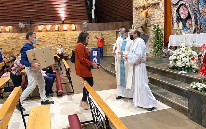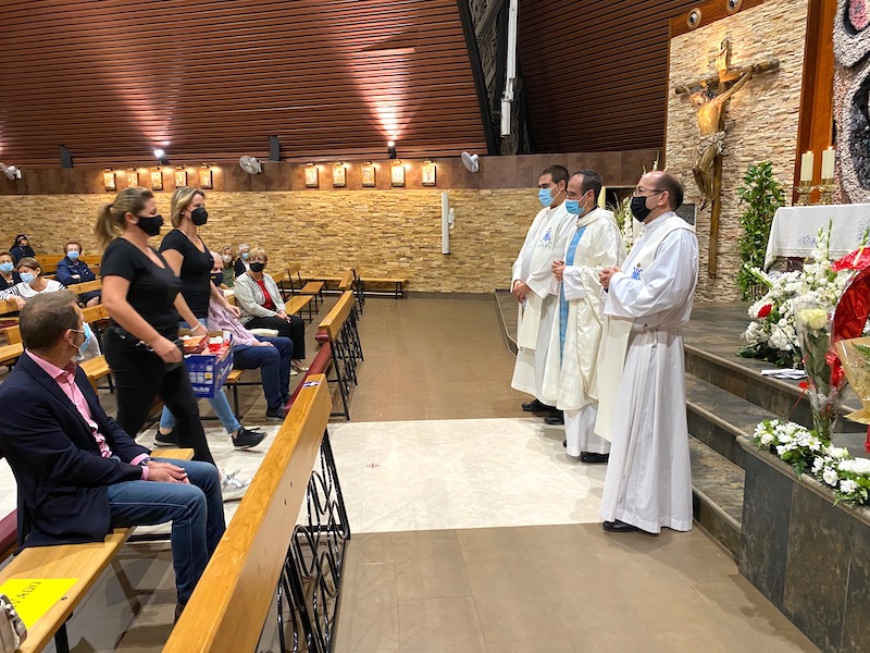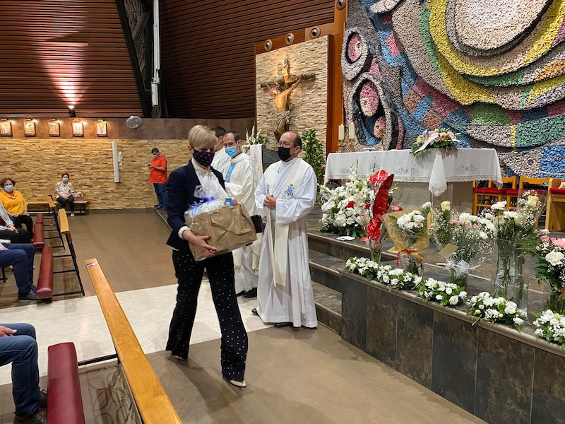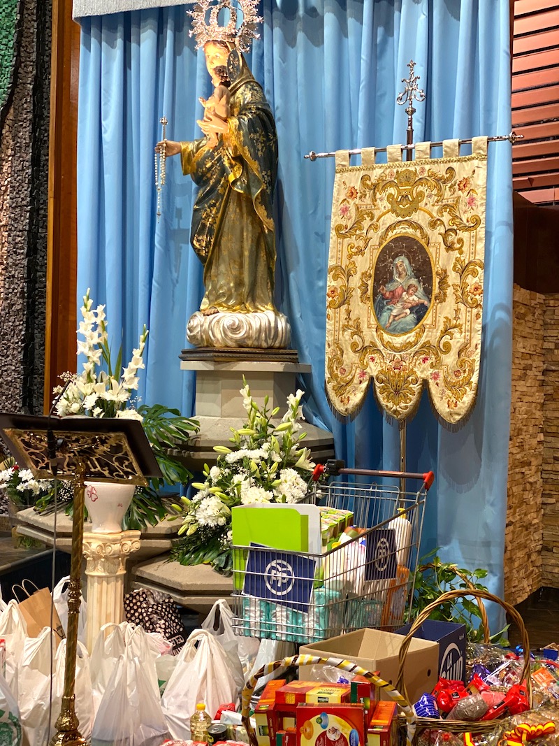 Inusual imagen de la parroquia en el día de la ofrenda a la patrona.
