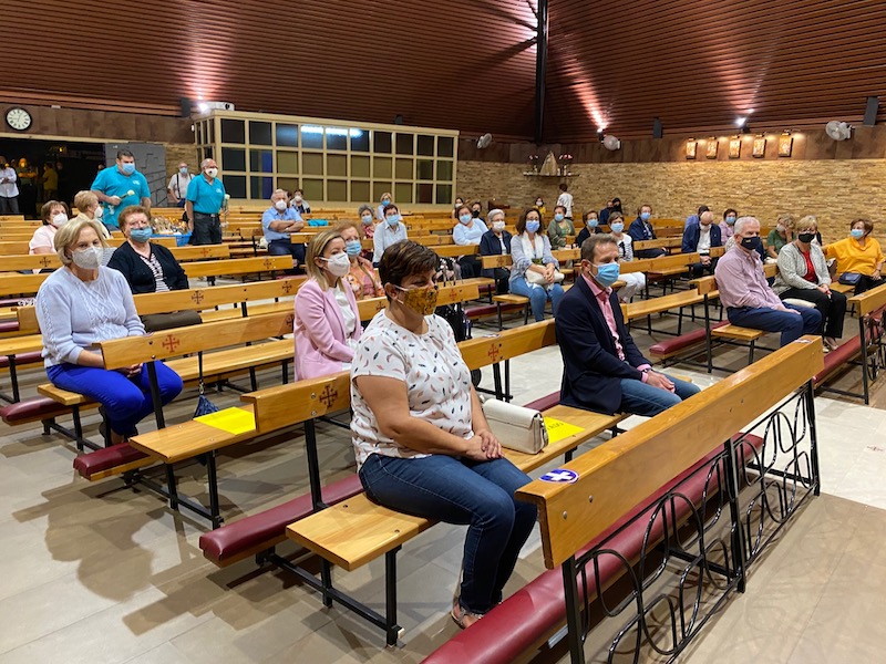 Las medidas de seguridad y la reducción del aforo dejaron una imagen del templo parroquial muy diferente al de años anteriores, cuando los vecinos acudían masivamente a cumplir con su cita con la Virgen. El resto de las pocas plazas las llenaron vecinos y peñas, que llevaron cajas y bolsas de alimentos. «Es uno de los actos que más alimentos recauda para Cáritas», explica la concejal de Festejos, Yolanda Castaño, quien asegura que «los vecinos están tristes y el ambiente apagado porque en Torre Pacheco la participación festiva es muy grande».