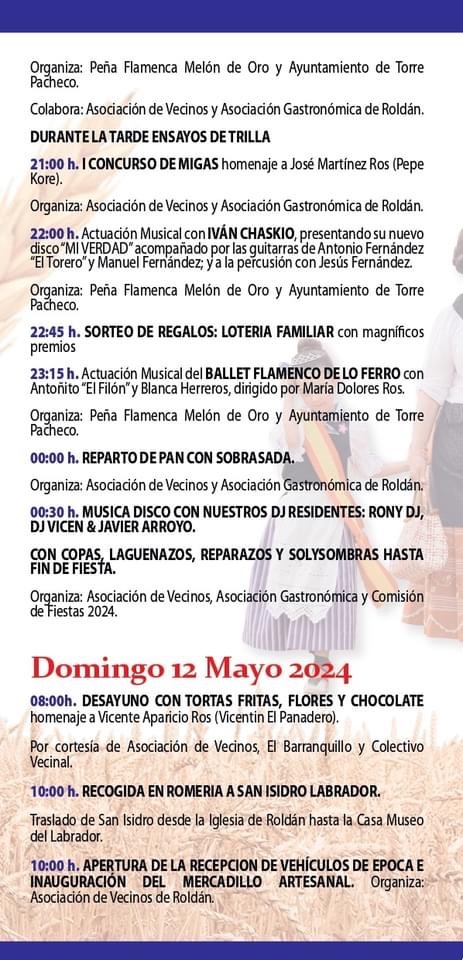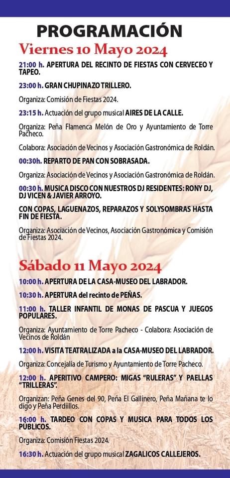 Roldán se ha convertido en el guardían de las tradiciones, el patrimonio cultural, histórico y etnográfico del campo de Cartagena con la celebración de La Fiesta de la Trilla los días 10, 11 y 12 de mayo.