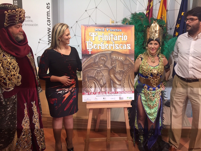 El director general en funciones del Instituto de Turismo de la Región de Murcia, Manuel Fernández–Delgado Tomás acompañado por la alcaldesa en funciones de Torre-Pacheco, Fina Marín Otón, y al concejal en funciones de Turismo, Toni Madrid, han presentado hoy las XXI Fiestas de Trinitarios y Berberiscos, que se celebrarán en el municipio del 5 al 7 de junio.