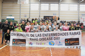 Alt: Las jugadoras del STV Roldán posan en el pabellón Imbroda